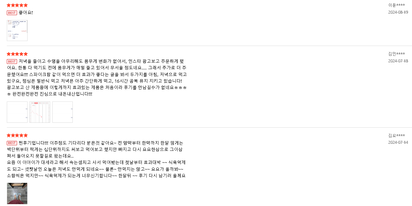 - 설사, 가스 등의 부작용을 경험했다는 후기도 있습니다.