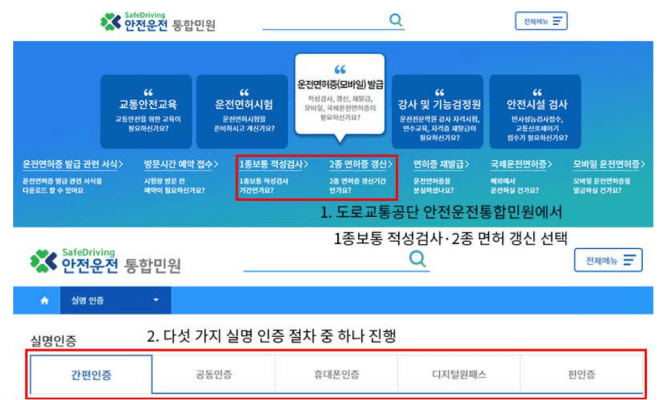 [1] 안전운전 통합민원 - 도로교통공단 적성검사/면허갱신 (https://www.safedriving.or.kr/guide/larGuide011.do?menuCode=MN-PO-1211)