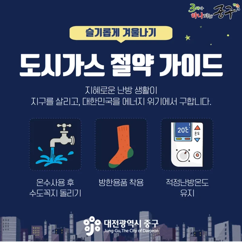- 따뜻한 옷 착용하기 : 실내에서 따뜻한 옷을 입으면 난방 온도를 낮춰도 체온을 유지할 수 있습니다.
