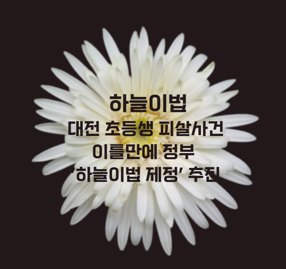 하늘이 법은 최근 대전 초등생 피살 사건을 계기로 주목받고 있는 법안입니다. 이 법안은 고위험군 정신질환 교사를 학생들과 분리하는 조치를 담고 있으며, 교육 현장에서의 안전을 강화하기 위한 목적을 가지고 있습니다. 이번 포스트에서는 하늘이 법의 배경, 주요 내용, 필요성, 사회적 영향, 반응, 그리고 향후 전망에 대해 자세히 알아보겠습니다.