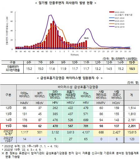 [2] 주간 건강과 질병 - 2023년 동절기 호흡기감염병 관계부처 합동 대책반 운영 결과 (https://www.phwr.org/journal/view.html?pn=vol&uid=757&vmd=Full)