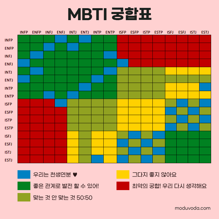 주의: MBTI 궁합은 단순한 참고 자료일 뿐, 모든 관계를 완벽하게 설명할 수는 없습니다. 사람은 복잡한 존재이므로, MBTI 유형 외에도 다양한 요소들이 관계에 영향을 미칩니다.